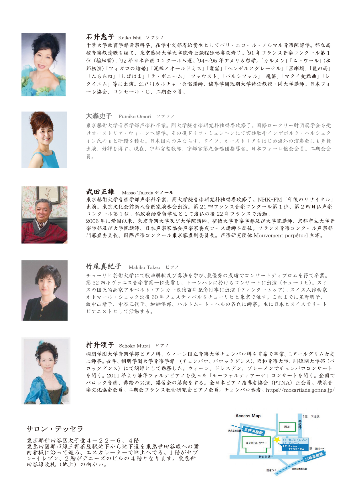 | 出演 | Sop. 石井恵子 Sop. 大森史子 Ten. 武田正雄 Pf. 竹尾真紀子 Pf. 村井頌子 |