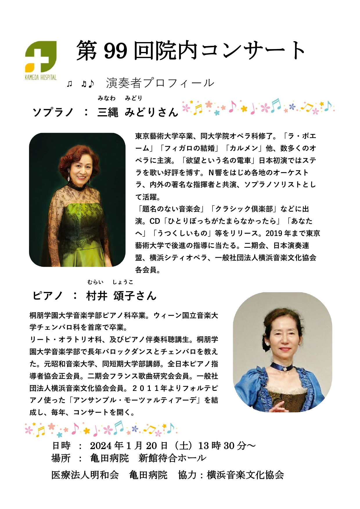 出演 三繩みどり(Sop.) 村井頌子(Pf.)